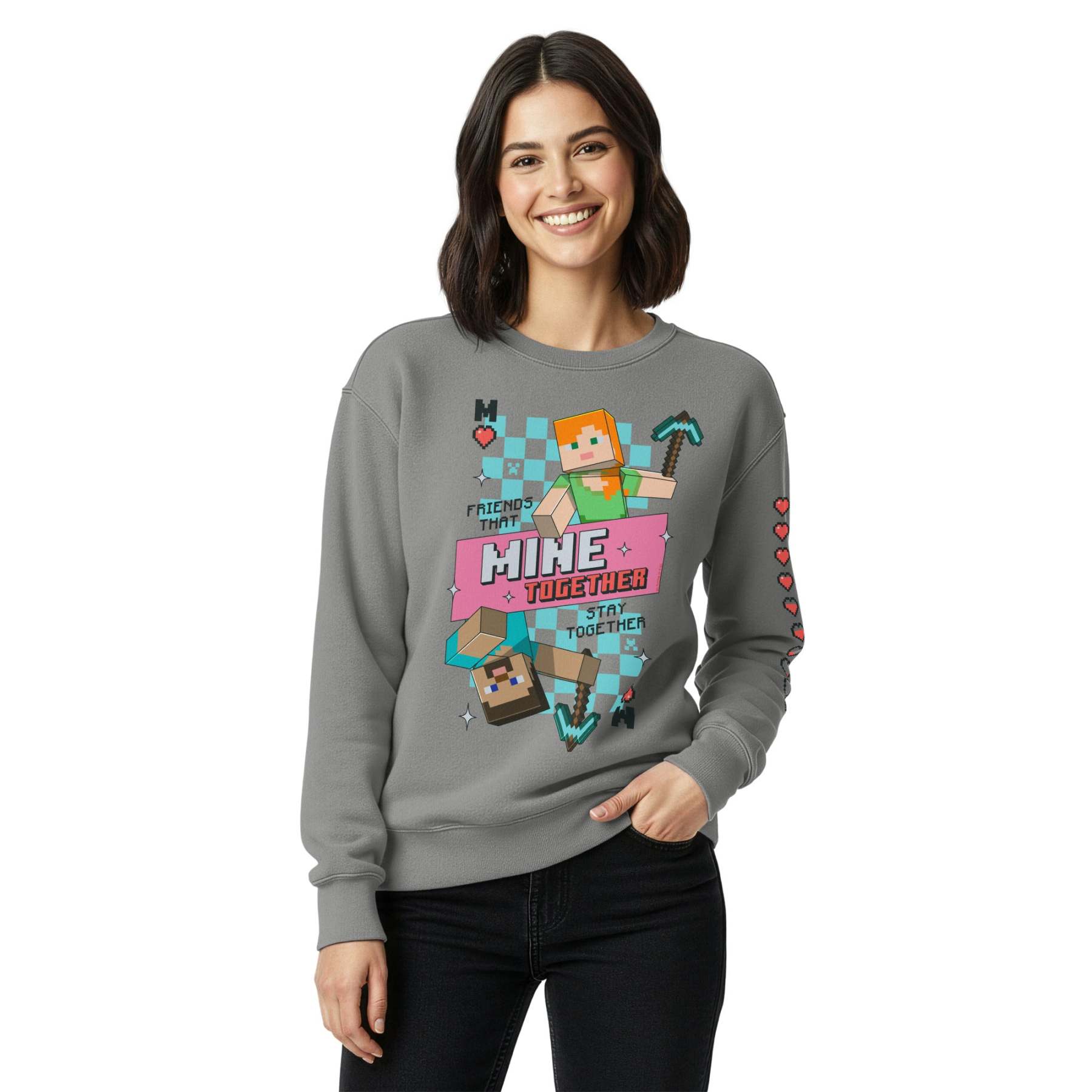 Build, explore, and stay cozy in the Minecraft “Mine Together” Sweatshirt, crafted on a premium Comfort Colors® blank for superior softness and laid back style. Featuring a fun, pixel inspired design with the phrase “Mine Together”, this sweatshirt celebrates teamwork, creativity, and the shared adventures that make Minecraft unforgettable.