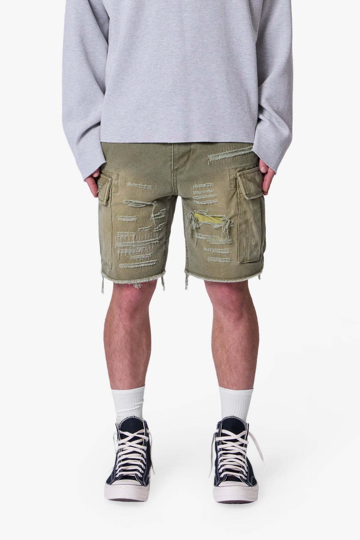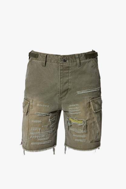 Distressed Cargo Shorts - Olive